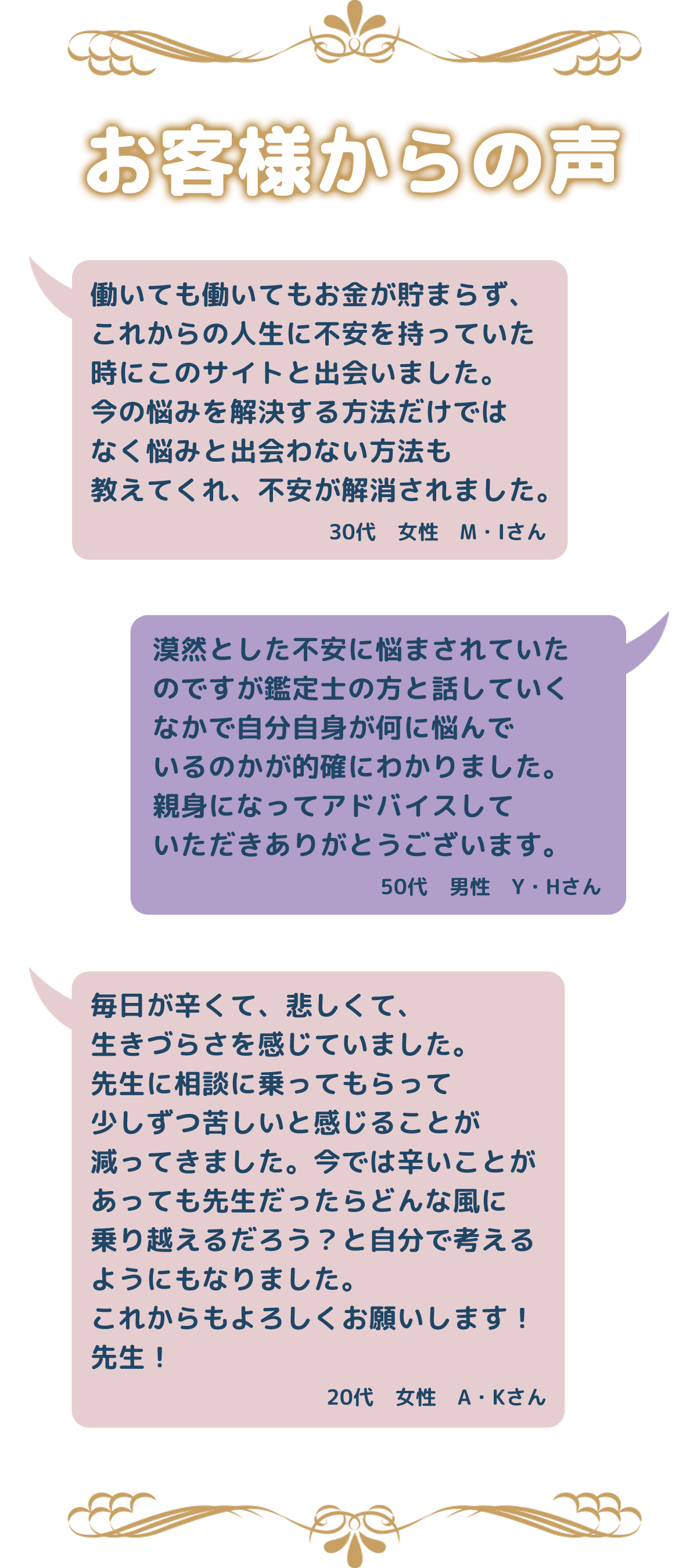 あなたの不安や悩みを占い師たちにお聞かせください!